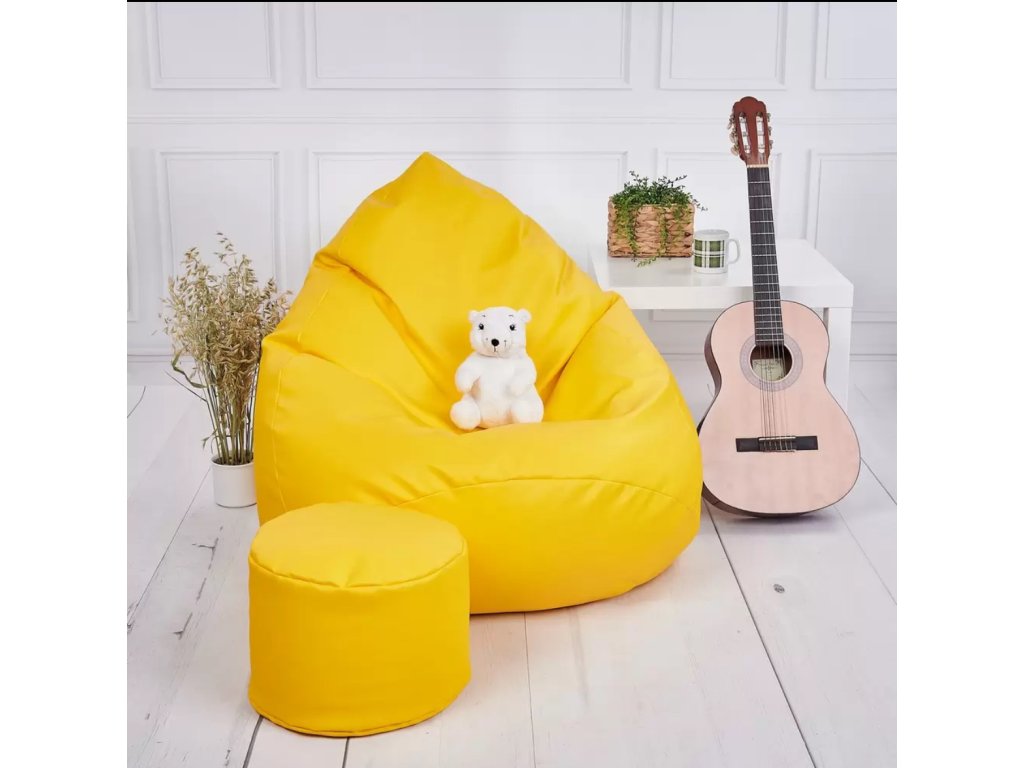 Žltý sedací vak s podnožníkom z eko kože – veľký
