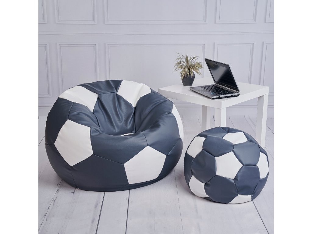 Štýlový a pohodlný sedací vak v tvare futbalovej lopty s priemerom 100 cm je ideálnym doplnkom do detskej izby, herne, obývačky aj na terasu. Vyrobený z mäkkej a odolnej eko kože, s výplňou z granulovaného polystyrénu, ktorá sa dokonale prispôsobí telu. Vak je doplnený o podnožník v rovnakom dizajne, ktorý zvyšuje komfort pri sedení.