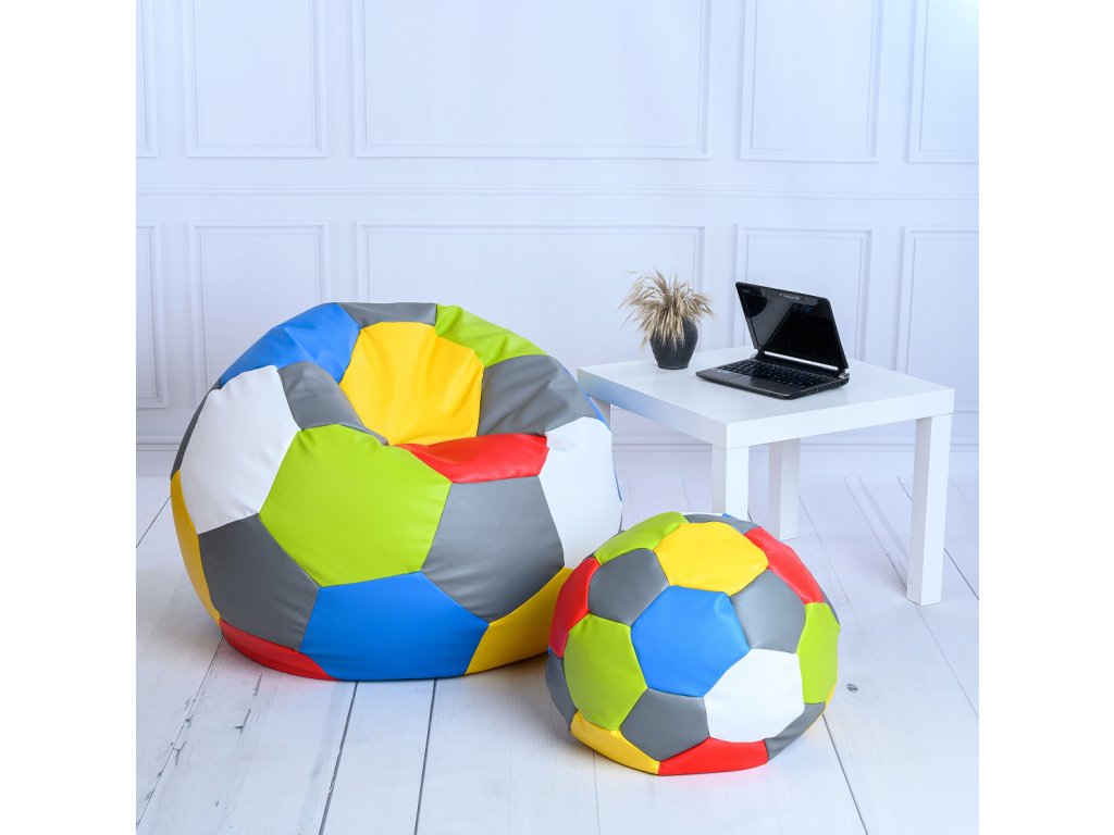 Štýlový a pohodlný sedací vak v tvare futbalovej lopty s priemerom 100 cm je ideálnym doplnkom do detskej izby, herne, obývačky aj na terasu. Vyrobený z mäkkej a odolnej eko kože, s výplňou z granulovaného polystyrénu, ktorá sa dokonale prispôsobí telu. Vak je doplnený o podnožník v rovnakom dizajne, ktorý zvyšuje komfort pri sedení.