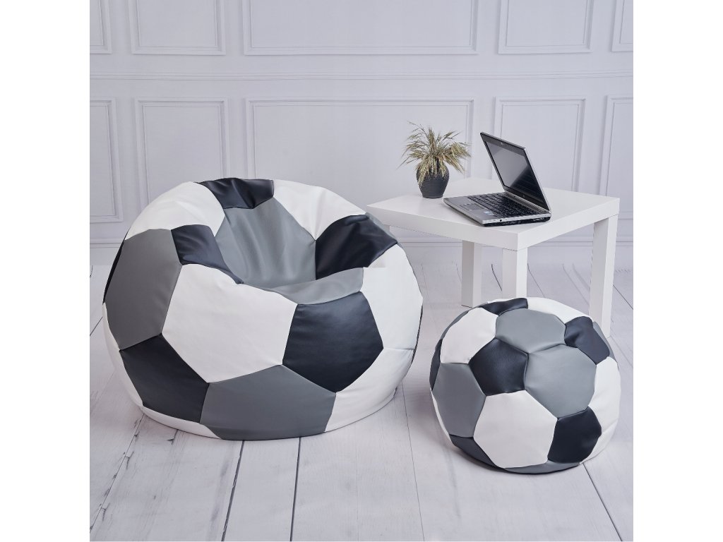 Štýlový a pohodlný sedací vak v tvare futbalovej lopty s priemerom 100 cm je ideálnym doplnkom do detskej izby, herne, obývačky aj na terasu. Vyrobený z mäkkej a odolnej eko kože, s výplňou z granulovaného polystyrénu, ktorá sa dokonale prispôsobí telu. Vak je doplnený o podnožník v rovnakom dizajne, ktorý zvyšuje komfort pri sedení.