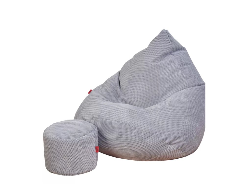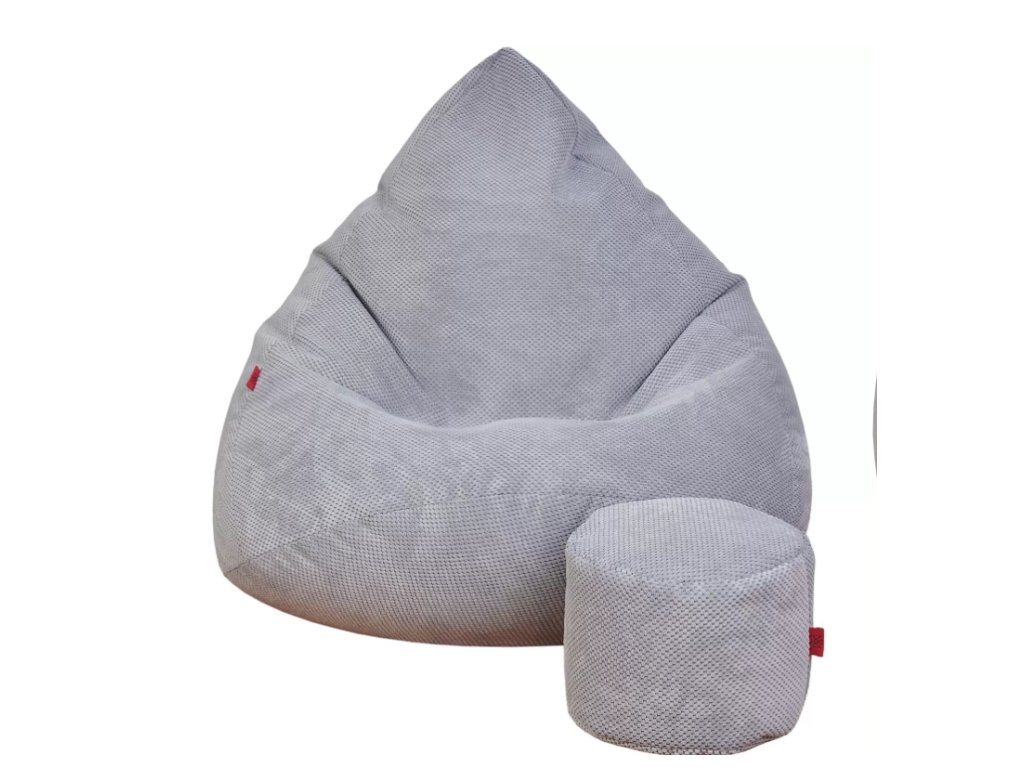 Štýlový sivý sedací vak s podnožkou pre deti aj dospelých