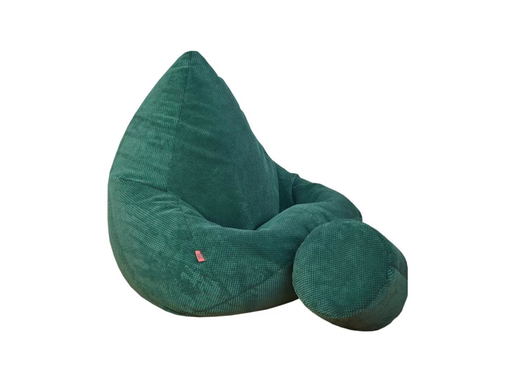 Štýlový zelený sedací vak s podnožkou pre deti aj dospelých