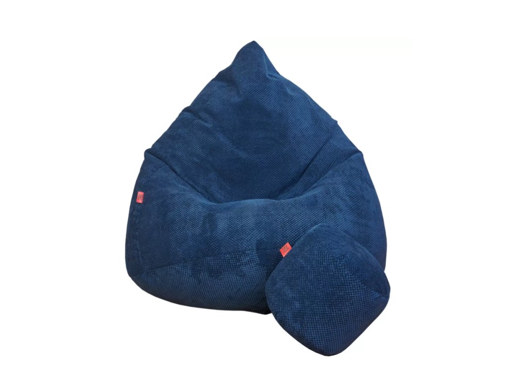 Štýlový tmavomodrý sedací vak s podnožkou pre deti aj dospelých