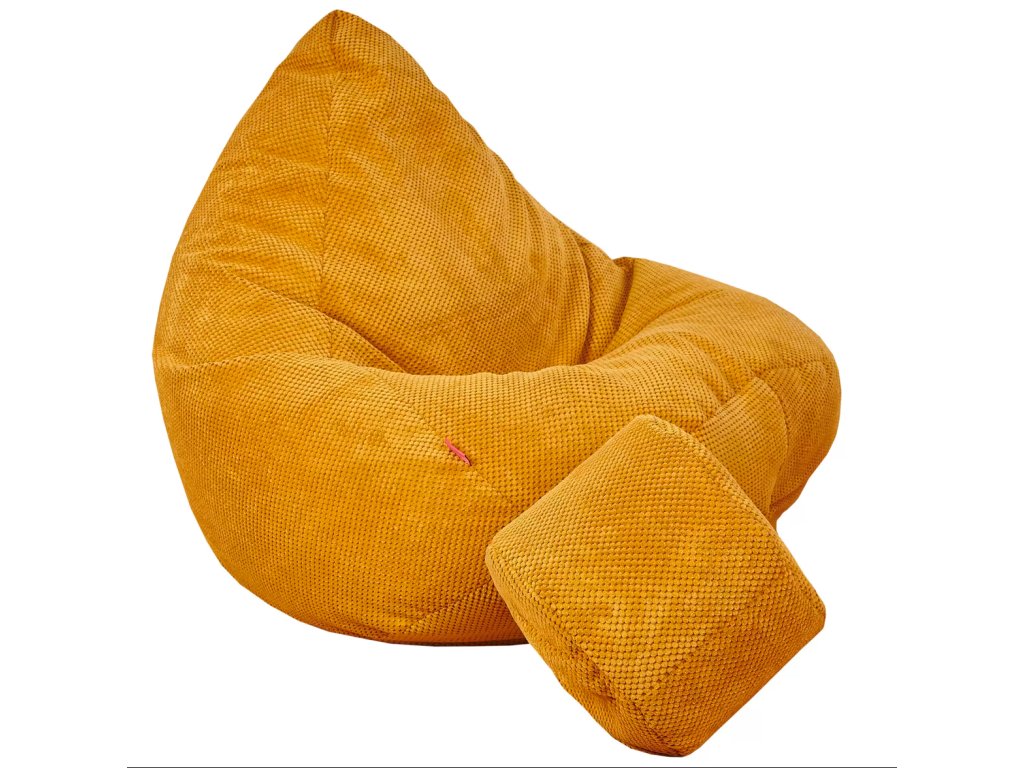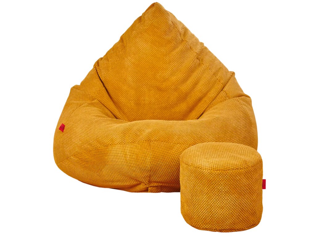 Štýlový žltý horčicový sedací vak s podnožkou pre deti aj dospelých