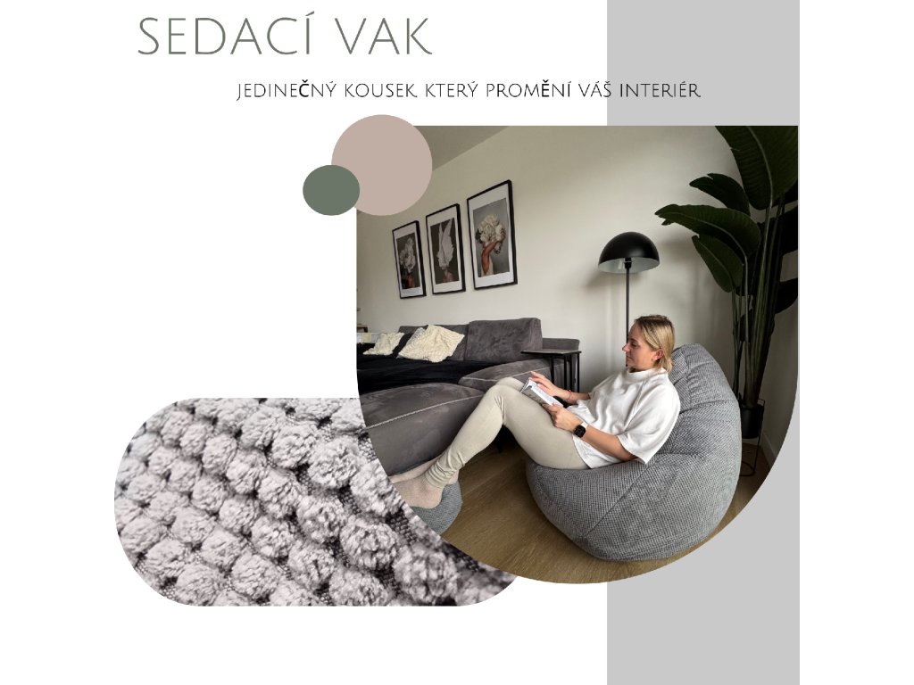 Pohodlný a bezpečný sedací vak pre deti aj dospelých s moderným dizajnom, prateľným poťahom a výplňou v cene. Vyrobené v EÚ, vhodné aj pre alergikov.