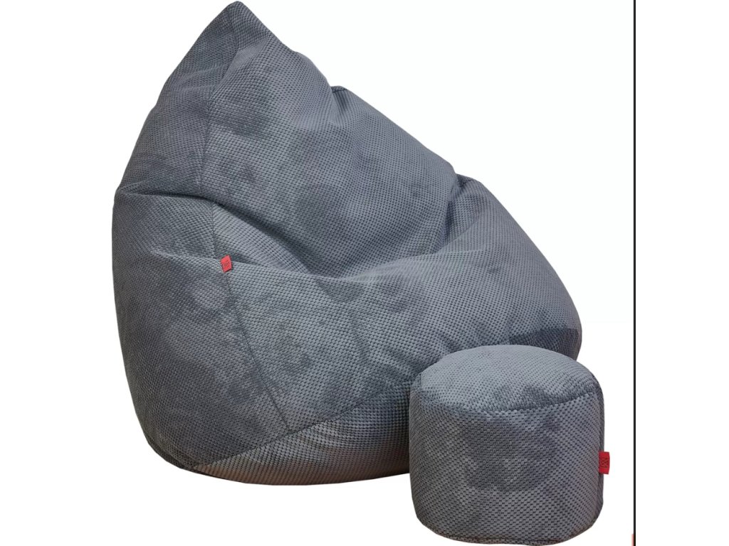 Štýlový grafitový sedací vak s podnožkou pre deti aj dospelých