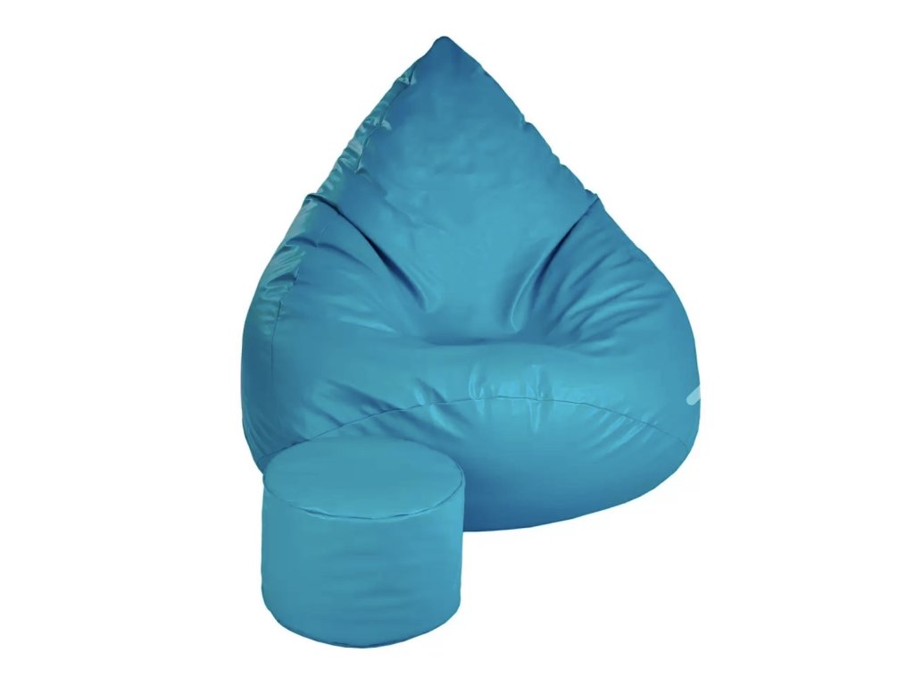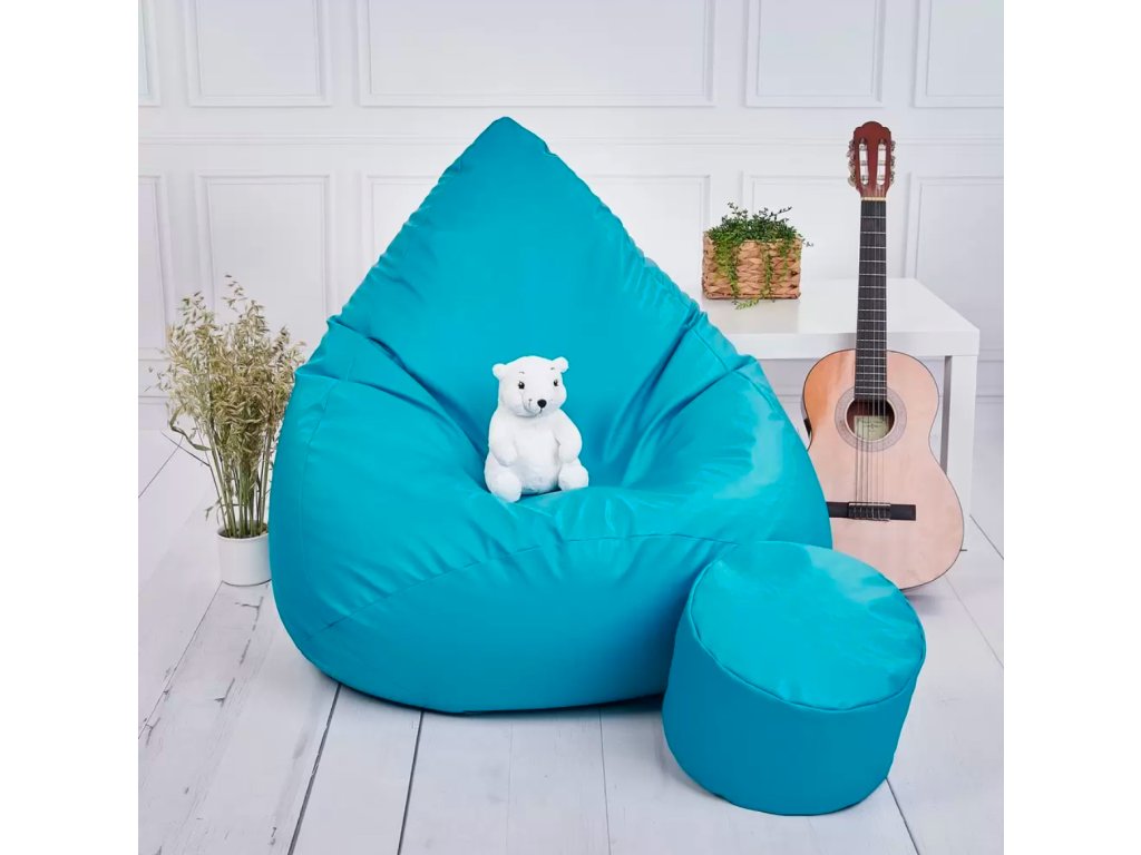 Tyrkysový sedací vak s podnožníkom z eko kože – střední