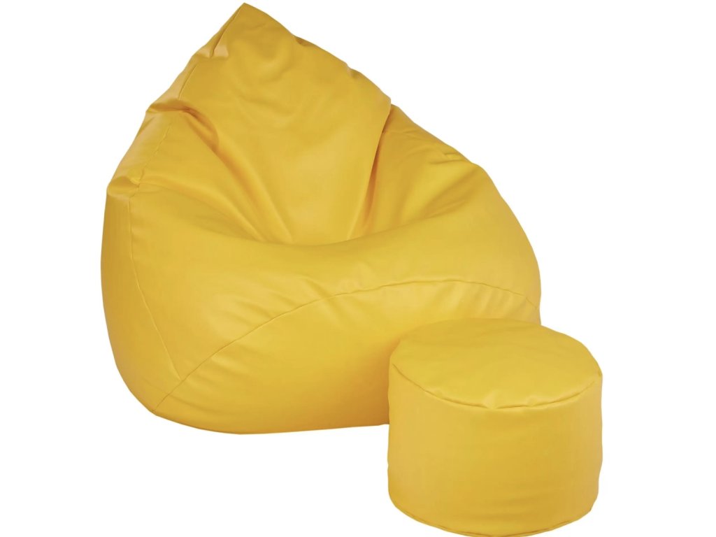 Žltý sedací vak s podnožníkom z eko kože – střední
